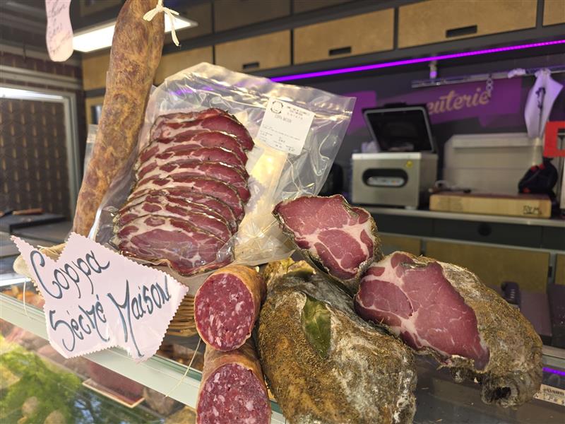 Home-made charcuterie from red-label pork purchased from the Poitou-Charentes region, manufactured without preservatives or colorants. Butcher's shop with Parthenaise breed meat purchased in Deux-Sèvres and Vienne, in the Poitou region.