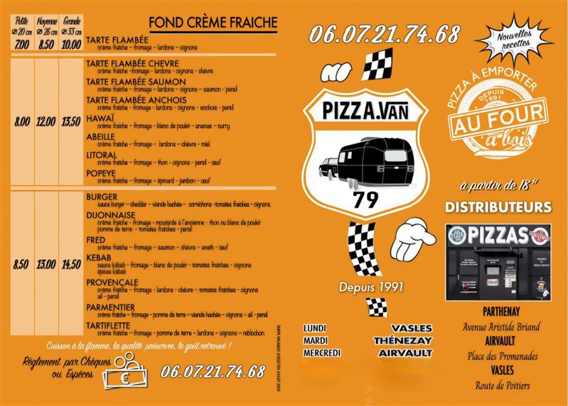Pizza Van delights you with its wood-fired pizzas! For reservations call 06.07.21.74.68. - Vasles: Mondays from 6pm - Thénezay: Tuesday from 6pm - Parthenay: Friday from 6pm